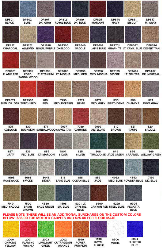 Cut Pile Teppiche (100% Nylon) wurden in den meisten US-Fahrzeugen und auch in den anderen Herstellerländern ab 1974 bis heute benutzt.