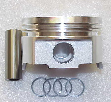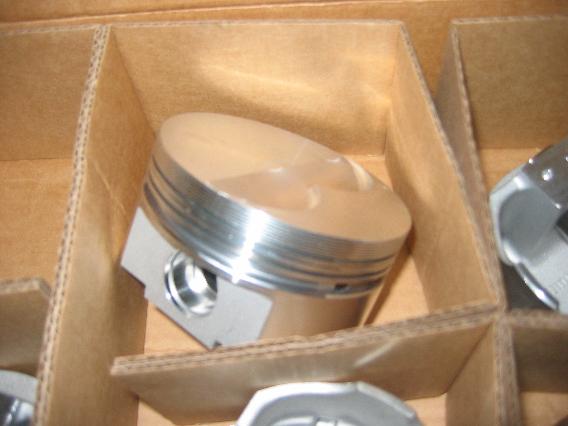 ...aber die wurde ja zum Stroken getauscht gegen eine 428er Kurbelwelle, die wir mit den bearbeiteten Pleueln, den neuen Rennsport-Schmiedekolben von Probe Industries (mit 2 Ventiltaschen anstatt 4 bei Standardkolben)