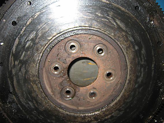 Die Schwungscheibe sah auch nicht gerade rosig aus. Wie da die Kupplung überhaupt noch funktionierte, ist mir im Nachhinein ein Rätsel.
